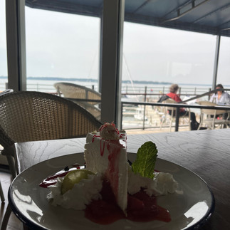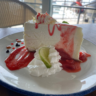 The key lime cheesecake, was a hybrid between key lime pie and cheese cake. It's made right across the harbor at the bakery. Not as dense as a typical cheesecake. It's airy and big and delicious.