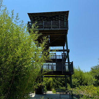 The towering trifoliate maze of bamboo, is a very secluded shady retreat from the sun. The observation tower chimes in the wind.